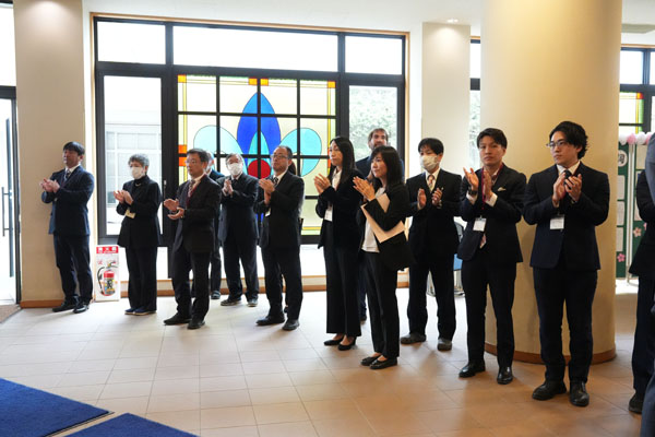 穏やかな天気に恵まれた一日で、同窓会から寄贈された「旅立ちの桜」と名づけられた院長室前の河津桜は、今年もまた卒業生を見送るかのように満開でした。