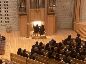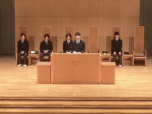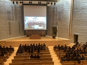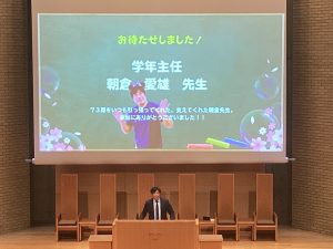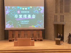 2月27日(金)9:40から大チャペルにて、73期生の卒業修養会が行われました。卒業修養会は、生徒運営の「開会礼拝」で始まりました。旧約聖書コヘレトの言葉12章1節を受けて、担当した生徒のお話は、考え抜かれた素晴らしい内容でした。開会礼拝に引き続き、学院特別賞をスキーとウィンドサーフィンで受賞する2名の紹介動画と挨拶がありました。動画はハイレベルな世界で戦うクラスメートの凄さを実感させてくれるとともに、多くの事に感謝を述べるその姿勢に私たちも大いに学ばされました。「学院特別賞受賞者の紹介」に続き、それぞれのコース(A進学、S選抜、G一貫)の三年間を振り返る「コース別スピーチ」はそれぞれのコースの違いが判ると同時に、どのコースも充実した高校生活であった事が伝わってきました。スピーチ後は「Super yokosuka quiz」と題した楽しいクイズタイムでした。クラス単位で回答をし、答え合わせのたびに大いに盛り上がりました。1位~3位のクラスに賞品が出ました。そのあとは倍々Fightに乗せて次々と学年全体で踊りをつなぐ動画、修養会委員作成の三年間を振り返るスライド、学年の先生たちによる踊りのプレゼント動画、学年主任挨拶のあと、各クラスから各クラス担任に向けての感謝の動画と続きました。73期生に関わったことのある先生方のメッセージもあり、先生方の温かさを感じるとともに、73期生の持つ力や温かさも感じることが出来ました。この後3月2日(月)が卒業式です。