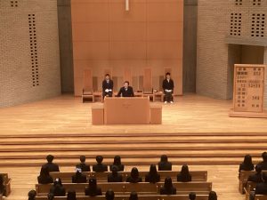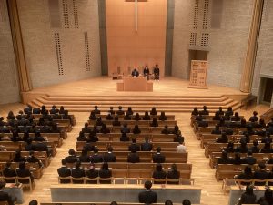 2月25日(水)9:40から、高校3年生の卒業記念礼拝が大チャペルにて持たれました。お話は横須賀学院院長・理事長である川名稔先生でした。川名先生は高校3年生(73期生)の入学時には中学高等学校校長を務めており、この学年にとっては親しみのある先生でもあります。スポーツにおけるルール違反ではないが違和感の残るプレー、ルールには書かれていないが人々を温かい気持ちにさせるプレーをいくつか紹介し、私たちの生き方への問いとされました。そして2023年の入学式で当時校長として新入生に呼びかけた言葉を振り返り、さらにすべての先生が順番にお話をする毎日の礼拝の、担当される先生方の思いに触れて、卒業生全員に対する願いと期待を述べられました。26日(木)には卒業式予行、27日(金)には73期生のまとめの行事でもある卒業修養会が実施され、3月2日(月)の卒業式を待ちます。