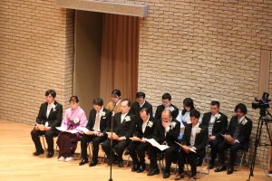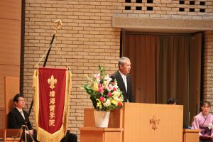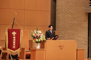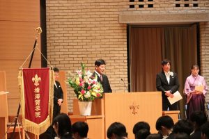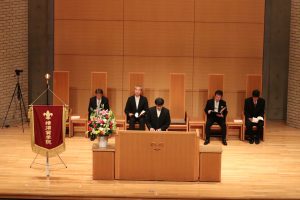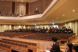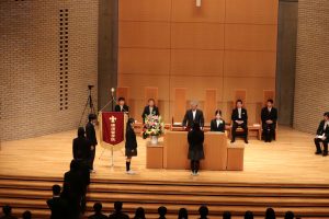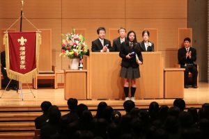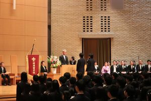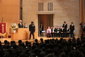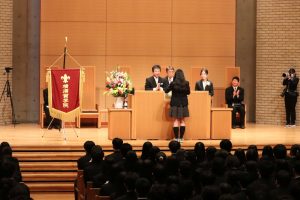 聖歌隊による合唱、天野校長の告辞、在校生2年生男子による送辞、3年生女子による答辞、