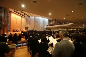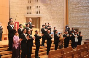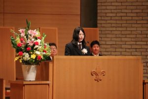 万感の思いを込めて卒業生が歌う讃美歌439番(卒業の歌)の後、教職員・在校生代表・保護者が卒業生の前途を祝し讃美歌405番(送別の歌)を贈りました。
