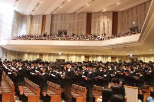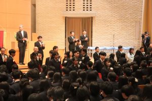 そして最後の10点鐘が鳴り響いた後、大チャペル・小チャペル・カフェテリアの保護者の皆様と教職員の万雷の拍手に送られ、433名の卒業生が横須賀学院を雄々しく巣立って行きました。