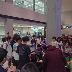 高校2年生が体験学習に出発しました。10月28日(火)~10月31日(金)の4日間、G一貫コースはサイパンコース(94名)へ、A進学・S選抜コースは、沖縄コース(277名)・グアムコース(126名)の2コースへと、計3コースで実施します。どのコースも平和学習を柱に自然体験・文化体験・異文化共生などのテーマの下4日間を過ごします。事前・事後学習も含め実り多い体験学習として欲しいと思います。1・3年生はこの間、午前4時間の臨時時間割(午後一部特別プログラムあり)となります。